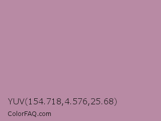 YUV 154.718,4.576,25.68 Color is a light magenta color and the nearest color is Opera Mauve #b784a7. Hex code #b88aa4 and RGB value is rgb(184,138,164). In RGB color space, this color is composed of 72% red, 54% green, 64% blue, In CMYK color space, this color is composed of 0% cyan, 25% magenta, 11% yellow , 28% black , In HSL color space, this color has a hue angle of 326° , 24% saturation and 63% lightness.