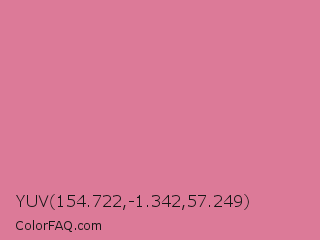 YUV 154.722,-1.342,57.249 Color is a light rose color and the nearest color is Bright Blush #e47698. Hex code #dc7a98 and RGB value is rgb(220,122,152). In RGB color space, this color is composed of 86% red, 48% green, 60% blue, In CMYK color space, this color is composed of 0% cyan, 45% magenta, 31% yellow , 14% black , In HSL color space, this color has a hue angle of 342° , 58% saturation and 67% lightness.
