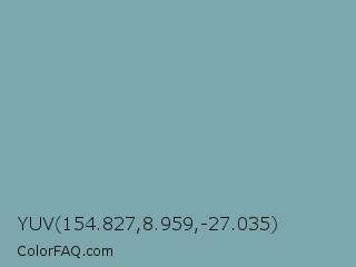 YUV 154.827,8.959,-27.035 Color is a normal cyan color and the nearest color is Gumbo #7ca1a6. Hex code #7ca7ad and RGB value is rgb(124,167,173). In RGB color space, this color is composed of 49% red, 65% green, 68% blue, In CMYK color space, this color is composed of 28% cyan, 3% magenta, 0% yellow , 32% black , In HSL color space, this color has a hue angle of 187° , 23% saturation and 58% lightness.