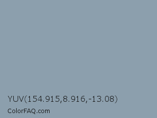 YUV 154.915,8.916,-13.08 Color is a light blue color and the nearest color is Cadet Grey #91a3b0. Hex code #8c9fad and RGB value is rgb(140,159,173). In RGB color space, this color is composed of 55% red, 62% green, 68% blue, In CMYK color space, this color is composed of 19% cyan, 8% magenta, 0% yellow , 32% black , In HSL color space, this color has a hue angle of 205° , 17% saturation and 61% lightness.
