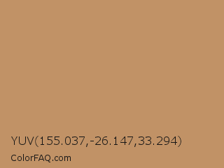 YUV 155.037,-26.147,33.294 Color is a normal orange color and the nearest color is Desert Camel #c19a6b. Hex code #c19266 and RGB value is rgb(193,146,102). In RGB color space, this color is composed of 76% red, 57% green, 40% blue, In CMYK color space, this color is composed of 0% cyan, 24% magenta, 47% yellow , 24% black , In HSL color space, this color has a hue angle of 29° , 42% saturation and 58% lightness.