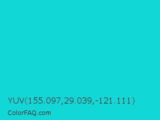 YUV 155.097,29.039,-121.111 Color is a normal cyan color and the nearest color is Dark Turquoise #00ced1. Hex code #11d6d6 and RGB value is rgb(17,214,214). In RGB color space, this color is composed of 7% red, 84% green, 84% blue, In CMYK color space, this color is composed of 92% cyan, 0% magenta, 0% yellow , 16% black , In HSL color space, this color has a hue angle of 180° , 85% saturation and 45% lightness.