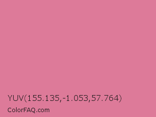 YUV 155.135,-1.053,57.764 Color is a light rose color and the nearest color is Bright Blush #e47698. Hex code #dd7a99 and RGB value is rgb(221,122,153). In RGB color space, this color is composed of 87% red, 48% green, 60% blue, In CMYK color space, this color is composed of 0% cyan, 45% magenta, 31% yellow , 13% black , In HSL color space, this color has a hue angle of 341° , 59% saturation and 67% lightness.