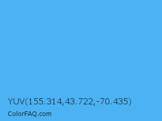 YUV 155.314,43.722,-70.435 Color is a light blue color and the nearest color is Picton Blue #45b1e8. Hex code #4bb3f4 and RGB value is rgb(75,179,244). In RGB color space, this color is composed of 29% red, 70% green, 96% blue, In CMYK color space, this color is composed of 69% cyan, 27% magenta, 0% yellow , 4% black , In HSL color space, this color has a hue angle of 203° , 88% saturation and 63% lightness.