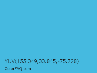 YUV 155.349,33.845,-75.728 Color is a normal blue color and the nearest color is Picton Blue #45b1e8. Hex code #45bae0 and RGB value is rgb(69,186,224). In RGB color space, this color is composed of 27% red, 73% green, 88% blue, In CMYK color space, this color is composed of 69% cyan, 17% magenta, 0% yellow , 12% black , In HSL color space, this color has a hue angle of 195° , 71% saturation and 57% lightness.