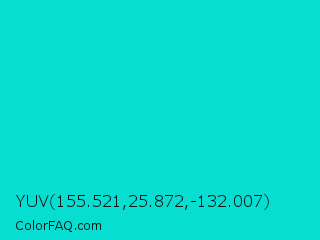YUV 155.521,25.872,-132.007 Color is a normal cyan color and the nearest color is Dark Turquoise #00ced1. Hex code #05ded0 and RGB value is rgb(5,222,208). In RGB color space, this color is composed of 2% red, 87% green, 82% blue, In CMYK color space, this color is composed of 98% cyan, 0% magenta, 6% yellow , 13% black , In HSL color space, this color has a hue angle of 176° , 96% saturation and 45% lightness.