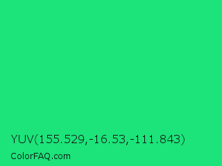 YUV 155.529,-16.53,-111.843 Color is a normal green color and the nearest color is UFO Green #3cd070. Hex code #1ce37a and RGB value is rgb(28,227,122). In RGB color space, this color is composed of 11% red, 89% green, 48% blue, In CMYK color space, this color is composed of 88% cyan, 0% magenta, 46% yellow , 11% black , In HSL color space, this color has a hue angle of 148° , 78% saturation and 50% lightness.