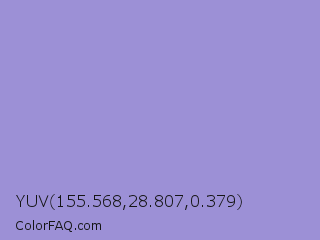 YUV 155.568,28.807,0.379 Color is a light indigo color and the nearest color is Blue Bell Crayola #9999cc. Hex code #9c90d6 and RGB value is rgb(156,144,214). In RGB color space, this color is composed of 61% red, 56% green, 84% blue, In CMYK color space, this color is composed of 27% cyan, 33% magenta, 0% yellow , 16% black , In HSL color space, this color has a hue angle of 250° , 46% saturation and 70% lightness.