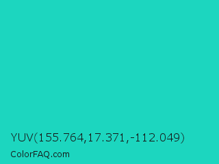 YUV 155.764,17.371,-112.049 Color is a normal cyan color and the nearest color is Java #1fc2c2. Hex code #1cd6bf and RGB value is rgb(28,214,191). In RGB color space, this color is composed of 11% red, 84% green, 75% blue, In CMYK color space, this color is composed of 87% cyan, 0% magenta, 11% yellow , 16% black , In HSL color space, this color has a hue angle of 173° , 77% saturation and 47% lightness.