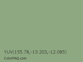 YUV 155.78,-13.203,-12.085 Color is a normal green color and the nearest color is Envy #8ba690. Hex code #8ea881 and RGB value is rgb(142,168,129). In RGB color space, this color is composed of 56% red, 66% green, 51% blue, In CMYK color space, this color is composed of 15% cyan, 0% magenta, 23% yellow , 34% black , In HSL color space, this color has a hue angle of 100° , 18% saturation and 58% lightness.