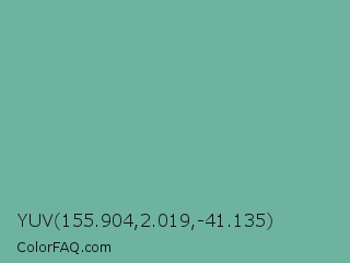 YUV 155.904,2.019,-41.135 Color is a normal cyan color and the nearest color is Green Sheen #6eaea1. Hex code #6db3a0 and RGB value is rgb(109,179,160). In RGB color space, this color is composed of 43% red, 70% green, 63% blue, In CMYK color space, this color is composed of 39% cyan, 0% magenta, 11% yellow , 30% black , In HSL color space, this color has a hue angle of 164° , 32% saturation and 56% lightness.