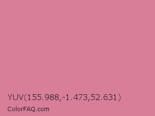 YUV 155.988,-1.473,52.631 Color is a light rose color and the nearest color is Shimmering Blush #d98695. Hex code #d87e99 and RGB value is rgb(216,126,153). In RGB color space, this color is composed of 85% red, 49% green, 60% blue, In CMYK color space, this color is composed of 0% cyan, 42% magenta, 29% yellow , 15% black , In HSL color space, this color has a hue angle of 342° , 54% saturation and 67% lightness.