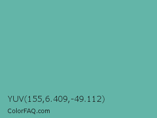 YUV 155,6.409,-49.112 Color is a normal cyan color and the nearest color is Tradewind #5fb3ac. Hex code #63b5a8 and RGB value is rgb(99,181,168). In RGB color space, this color is composed of 39% red, 71% green, 66% blue, In CMYK color space, this color is composed of 45% cyan, 0% magenta, 7% yellow , 29% black , In HSL color space, this color has a hue angle of 170° , 36% saturation and 55% lightness.
