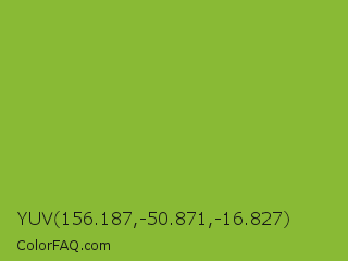 YUV 156.187,-50.871,-16.827 Color is a normal green color and the nearest color is Sushi #87ab39. Hex code #89ba35 and RGB value is rgb(137,186,53). In RGB color space, this color is composed of 54% red, 73% green, 21% blue, In CMYK color space, this color is composed of 26% cyan, 0% magenta, 72% yellow , 27% black , In HSL color space, this color has a hue angle of 82° , 56% saturation and 47% lightness.