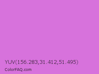 YUV 156.283,31.412,51.495 Color is a light magenta color and the nearest color is Orchid #da70d6. Hex code #d772dc and RGB value is rgb(215,114,220). In RGB color space, this color is composed of 84% red, 45% green, 86% blue, In CMYK color space, this color is composed of 2% cyan, 48% magenta, 0% yellow , 14% black , In HSL color space, this color has a hue angle of 297° , 60% saturation and 65% lightness.