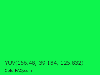 YUV 156.48,-39.184,-125.832 Color is a normal green color and the nearest color is Malachite #0bda51. Hex code #0df54d and RGB value is rgb(13,245,77). In RGB color space, this color is composed of 5% red, 96% green, 30% blue, In CMYK color space, this color is composed of 95% cyan, 0% magenta, 69% yellow , 4% black , In HSL color space, this color has a hue angle of 137° , 92% saturation and 51% lightness.