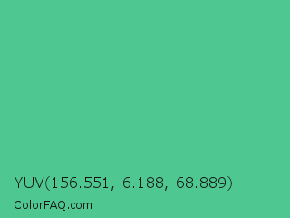 YUV 156.551,-6.188,-68.889 Color is a normal green color and the nearest color is Ocean Green #48bf91. Hex code #4ec790 and RGB value is rgb(78,199,144). In RGB color space, this color is composed of 31% red, 78% green, 56% blue, In CMYK color space, this color is composed of 61% cyan, 0% magenta, 28% yellow , 22% black , In HSL color space, this color has a hue angle of 153° , 52% saturation and 54% lightness.
