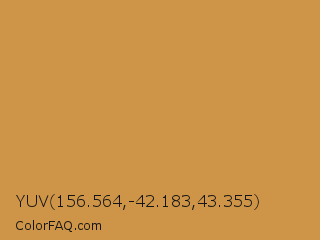YUV 156.564,-42.183,43.355 Color is a normal orange color and the nearest color is Tussock #c5994b. Hex code #ce9447 and RGB value is rgb(206,148,71). In RGB color space, this color is composed of 81% red, 58% green, 28% blue, In CMYK color space, this color is composed of 0% cyan, 28% magenta, 66% yellow , 19% black , In HSL color space, this color has a hue angle of 34° , 58% saturation and 54% lightness.
