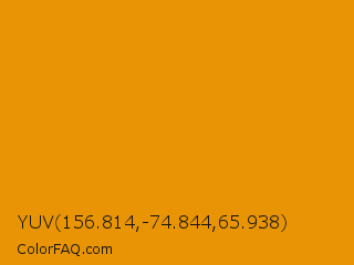 YUV 156.814,-74.844,65.938 Color is a normal orange color and the nearest color is Gamboge #e49b0f. Hex code #e89405 and RGB value is rgb(232,148,5). In RGB color space, this color is composed of 91% red, 58% green, 2% blue, In CMYK color space, this color is composed of 0% cyan, 36% magenta, 98% yellow , 9% black , In HSL color space, this color has a hue angle of 38° , 96% saturation and 46% lightness.
