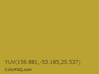 YUV 156.881,-53.185,25.537 Color is a normal yellow color and the nearest color is Hokey Pokey #c8a528. Hex code #baa331 and RGB value is rgb(186,163,49). In RGB color space, this color is composed of 73% red, 64% green, 19% blue, In CMYK color space, this color is composed of 0% cyan, 12% magenta, 74% yellow , 27% black , In HSL color space, this color has a hue angle of 50° , 58% saturation and 46% lightness.
