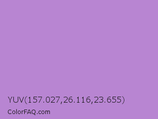 YUV 157.027,26.116,23.655 Color is a light purple color and the nearest color is Lavender #b57edc. Hex code #b885d2 and RGB value is rgb(184,133,210). In RGB color space, this color is composed of 72% red, 52% green, 82% blue, In CMYK color space, this color is composed of 12% cyan, 37% magenta, 0% yellow , 18% black , In HSL color space, this color has a hue angle of 280° , 46% saturation and 67% lightness.