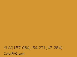 YUV 157.084,-54.271,47.284 Color is a normal orange color and the nearest color is Satin Sheen Gold #cba135. Hex code #d3972f and RGB value is rgb(211,151,47). In RGB color space, this color is composed of 83% red, 59% green, 18% blue, In CMYK color space, this color is composed of 0% cyan, 28% magenta, 78% yellow , 17% black , In HSL color space, this color has a hue angle of 38° , 65% saturation and 51% lightness.