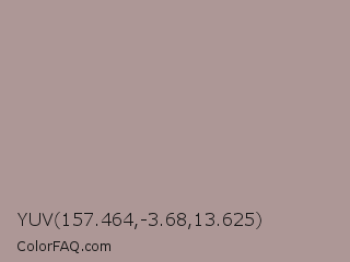 YUV 157.464,-3.68,13.625 Color is a light red color and the nearest color is Del Rio #b09a95. Hex code #ad9796 and RGB value is rgb(173,151,150). In RGB color space, this color is composed of 68% red, 59% green, 59% blue, In CMYK color space, this color is composed of 0% cyan, 13% magenta, 13% yellow , 32% black , In HSL color space, this color has a hue angle of 3° , 12% saturation and 63% lightness.