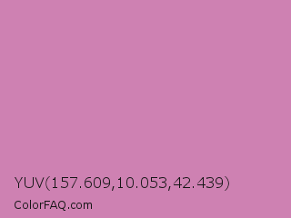 YUV 157.609,10.053,42.439 Color is a light magenta color and the nearest color is Middle Purple #d982b5. Hex code #ce81b2 and RGB value is rgb(206,129,178). In RGB color space, this color is composed of 81% red, 51% green, 70% blue, In CMYK color space, this color is composed of 0% cyan, 37% magenta, 14% yellow , 19% black , In HSL color space, this color has a hue angle of 322° , 44% saturation and 66% lightness.