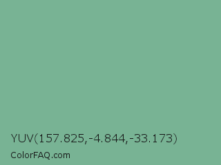 YUV 157.825,-4.844,-33.173 Color is a normal green color and the nearest color is Bay Leaf #7da98d. Hex code #78b394 and RGB value is rgb(120,179,148). In RGB color space, this color is composed of 47% red, 70% green, 58% blue, In CMYK color space, this color is composed of 33% cyan, 0% magenta, 17% yellow , 30% black , In HSL color space, this color has a hue angle of 148° , 28% saturation and 59% lightness.