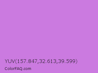 YUV 157.847,32.613,39.599 Color is a light purple color and the nearest color is French Mauve #d473d4. Hex code #cb7ae0 and RGB value is rgb(203,122,224). In RGB color space, this color is composed of 80% red, 48% green, 88% blue, In CMYK color space, this color is composed of 9% cyan, 46% magenta, 0% yellow , 12% black , In HSL color space, this color has a hue angle of 288° , 62% saturation and 68% lightness.