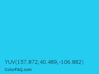 YUV 157.872,40.489,-106.882 Color is a normal cyan color and the nearest color is Spiro Disco Ball #0fc0fc. Hex code #24ccf0 and RGB value is rgb(36,204,240). In RGB color space, this color is composed of 14% red, 80% green, 94% blue, In CMYK color space, this color is composed of 85% cyan, 15% magenta, 0% yellow , 6% black , In HSL color space, this color has a hue angle of 191° , 87% saturation and 54% lightness.