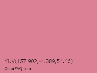 YUV 157.902,-4.389,54.46 Color is a light red color and the nearest color is Shimmering Blush #d98695. Hex code #dc8095 and RGB value is rgb(220,128,149). In RGB color space, this color is composed of 86% red, 50% green, 58% blue, In CMYK color space, this color is composed of 0% cyan, 42% magenta, 32% yellow , 14% black , In HSL color space, this color has a hue angle of 346° , 57% saturation and 68% lightness.