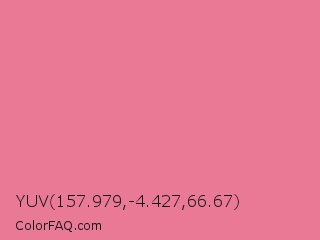 YUV 157.979,-4.427,66.67 Color is a light red color and the nearest color is Bright Blush #e47698. Hex code #ea7995 and RGB value is rgb(234,121,149). In RGB color space, this color is composed of 92% red, 47% green, 58% blue, In CMYK color space, this color is composed of 0% cyan, 48% magenta, 36% yellow , 8% black , In HSL color space, this color has a hue angle of 345° , 73% saturation and 70% lightness.