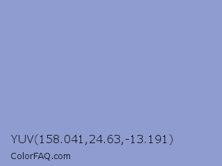 YUV 158.041,24.63,-13.191 Color is a light blue color and the nearest color is Ceil #92a1cf. Hex code #8f9cd0 and RGB value is rgb(143,156,208). In RGB color space, this color is composed of 56% red, 61% green, 82% blue, In CMYK color space, this color is composed of 31% cyan, 25% magenta, 0% yellow , 18% black , In HSL color space, this color has a hue angle of 228° , 41% saturation and 69% lightness.