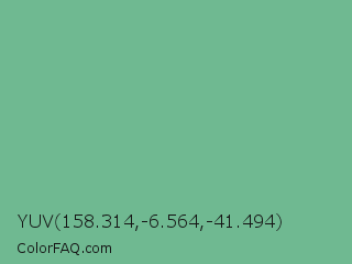 YUV 158.314,-6.564,-41.494 Color is a normal green color and the nearest color is Silver Tree #66b58f. Hex code #6fb991 and RGB value is rgb(111,185,145). In RGB color space, this color is composed of 44% red, 73% green, 57% blue, In CMYK color space, this color is composed of 40% cyan, 0% magenta, 22% yellow , 27% black , In HSL color space, this color has a hue angle of 148° , 35% saturation and 58% lightness.