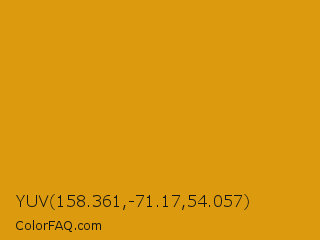 YUV 158.361,-71.17,54.057 Color is a normal orange color and the nearest color is Gamboge #e49b0f. Hex code #dc9b0e and RGB value is rgb(220,155,14). In RGB color space, this color is composed of 86% red, 61% green, 5% blue, In CMYK color space, this color is composed of 0% cyan, 30% magenta, 94% yellow , 14% black , In HSL color space, this color has a hue angle of 41° , 88% saturation and 46% lightness.