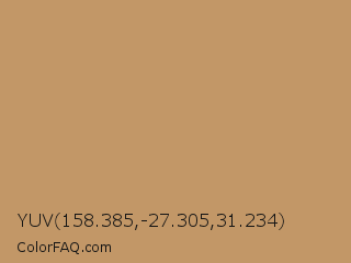 YUV 158.385,-27.305,31.234 Color is a normal orange color and the nearest color is Desert Camel #c19a6b. Hex code #c29767 and RGB value is rgb(194,151,103). In RGB color space, this color is composed of 76% red, 59% green, 40% blue, In CMYK color space, this color is composed of 0% cyan, 22% magenta, 47% yellow , 24% black , In HSL color space, this color has a hue angle of 32° , 43% saturation and 58% lightness.