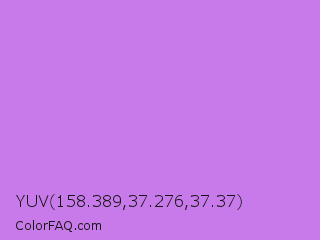 YUV 158.389,37.276,37.37 Color is a light purple color and the nearest color is Lavender #b57edc. Hex code #c97aea and RGB value is rgb(201,122,234). In RGB color space, this color is composed of 79% red, 48% green, 92% blue, In CMYK color space, this color is composed of 14% cyan, 48% magenta, 0% yellow , 8% black , In HSL color space, this color has a hue angle of 282° , 73% saturation and 70% lightness.