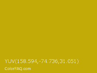 YUV 158.594,-74.736,31.051 Color is a normal yellow color and the nearest color is Buddha Gold #c1a004. Hex code #c2aa07 and RGB value is rgb(194,170,7). In RGB color space, this color is composed of 76% red, 67% green, 3% blue, In CMYK color space, this color is composed of 0% cyan, 12% magenta, 96% yellow , 24% black , In HSL color space, this color has a hue angle of 52° , 93% saturation and 39% lightness.
