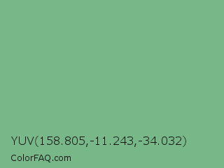 YUV 158.805,-11.243,-34.032 Color is a normal green color and the nearest color is De York #7ac488. Hex code #78b788 and RGB value is rgb(120,183,136). In RGB color space, this color is composed of 47% red, 72% green, 53% blue, In CMYK color space, this color is composed of 34% cyan, 0% magenta, 26% yellow , 28% black , In HSL color space, this color has a hue angle of 135° , 30% saturation and 59% lightness.