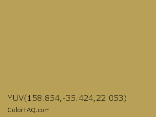 YUV 158.854,-35.424,22.053 Color is a normal orange color and the nearest color is Husk #b7a458. Hex code #b8a057 and RGB value is rgb(184,160,87). In RGB color space, this color is composed of 72% red, 63% green, 34% blue, In CMYK color space, this color is composed of 0% cyan, 13% magenta, 53% yellow , 28% black , In HSL color space, this color has a hue angle of 45° , 41% saturation and 53% lightness.