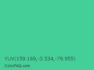 YUV 159.169,-3.534,-79.955 Color is a normal green color and the nearest color is Shamrock #33cc99. Hex code #44cf98 and RGB value is rgb(68,207,152). In RGB color space, this color is composed of 27% red, 81% green, 60% blue, In CMYK color space, this color is composed of 67% cyan, 0% magenta, 27% yellow , 19% black , In HSL color space, this color has a hue angle of 156° , 59% saturation and 54% lightness.