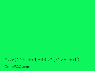 YUV 159.364,-33.21,-128.361 Color is a normal green color and the nearest color is Malachite #0bda51. Hex code #0df75c and RGB value is rgb(13,247,92). In RGB color space, this color is composed of 5% red, 97% green, 36% blue, In CMYK color space, this color is composed of 95% cyan, 0% magenta, 63% yellow , 3% black , In HSL color space, this color has a hue angle of 140° , 94% saturation and 51% lightness.