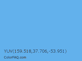 YUV 159.518,37.706,-53.951 Color is a light blue color and the nearest color is Blue Jeans #5dadec. Hex code #62b0ec and RGB value is rgb(98,176,236). In RGB color space, this color is composed of 38% red, 69% green, 93% blue, In CMYK color space, this color is composed of 58% cyan, 25% magenta, 0% yellow , 7% black , In HSL color space, this color has a hue angle of 206° , 78% saturation and 65% lightness.