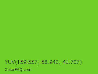 YUV 159.557,-58.942,-41.707 Color is a normal green color and the nearest color is Lima #76bd17. Hex code #70cf28 and RGB value is rgb(112,207,40). In RGB color space, this color is composed of 44% red, 81% green, 16% blue, In CMYK color space, this color is composed of 46% cyan, 0% magenta, 81% yellow , 19% black , In HSL color space, this color has a hue angle of 94° , 68% saturation and 48% lightness.