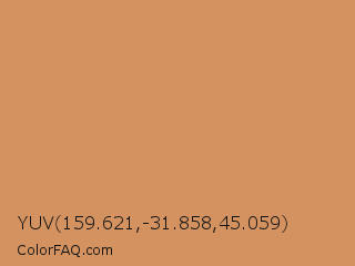 YUV 159.621,-31.858,45.059 Color is a normal orange color and the nearest color is Persian Orange #d99058. Hex code #d3925f and RGB value is rgb(211,146,95). In RGB color space, this color is composed of 83% red, 57% green, 37% blue, In CMYK color space, this color is composed of 0% cyan, 31% magenta, 55% yellow , 17% black , In HSL color space, this color has a hue angle of 26° , 57% saturation and 60% lightness.