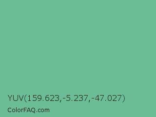 YUV 159.623,-5.237,-47.027 Color is a normal green color and the nearest color is Silver Tree #66b58f. Hex code #6abd95 and RGB value is rgb(106,189,149). In RGB color space, this color is composed of 42% red, 74% green, 58% blue, In CMYK color space, this color is composed of 44% cyan, 0% magenta, 21% yellow , 26% black , In HSL color space, this color has a hue angle of 151° , 39% saturation and 58% lightness.