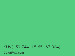 YUV 159.744,-15.65,-67.304 Color is a normal green color and the nearest color is Emerald #50c878. Hex code #53cd80 and RGB value is rgb(83,205,128). In RGB color space, this color is composed of 33% red, 80% green, 50% blue, In CMYK color space, this color is composed of 60% cyan, 0% magenta, 38% yellow , 20% black , In HSL color space, this color has a hue angle of 142° , 55% saturation and 56% lightness.