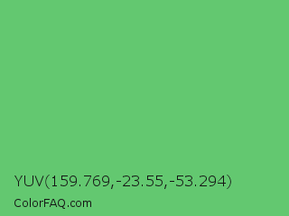 YUV 159.769,-23.55,-53.294 Color is a normal green color and the nearest color is Fern #63b76c. Hex code #63c870 and RGB value is rgb(99,200,112). In RGB color space, this color is composed of 39% red, 78% green, 44% blue, In CMYK color space, this color is composed of 51% cyan, 0% magenta, 44% yellow , 22% black , In HSL color space, this color has a hue angle of 128° , 48% saturation and 59% lightness.