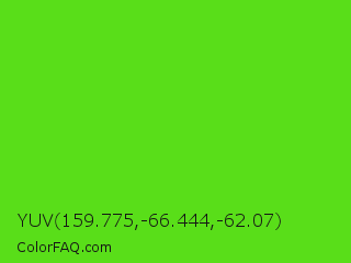 YUV 159.775,-66.444,-62.07 Color is a normal green color and the nearest color is Harlequin Green #46cb18. Hex code #59de19 and RGB value is rgb(89,222,25). In RGB color space, this color is composed of 35% red, 87% green, 10% blue, In CMYK color space, this color is composed of 60% cyan, 0% magenta, 89% yellow , 13% black , In HSL color space, this color has a hue angle of 101° , 80% saturation and 48% lightness.